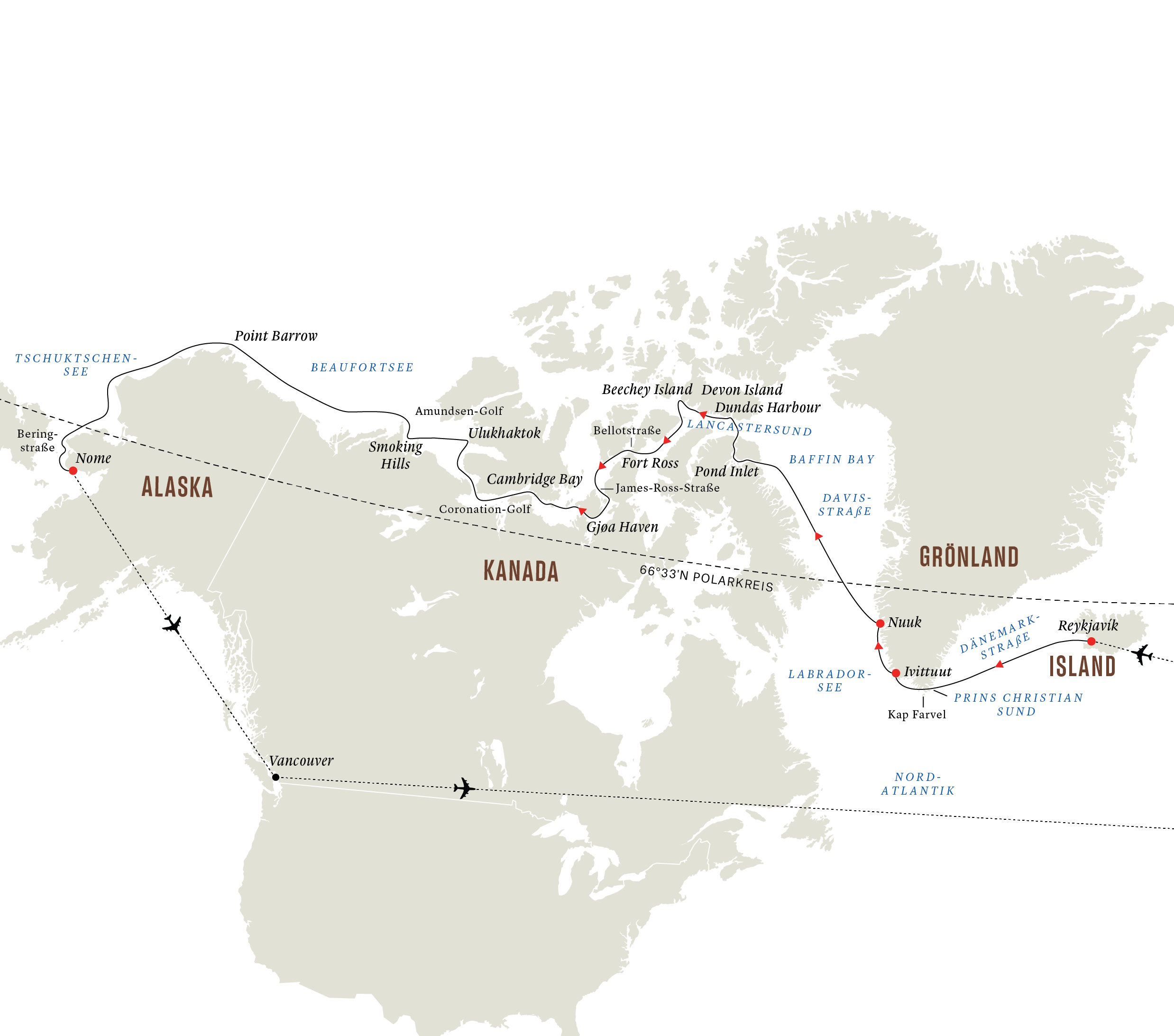 Leinen Los für eine der spektakulärsten Expeditionsreisen überhaupt. Am 08. August 2024 beginnt die letzte Abfahrt in 2024 auf der legendären Nord-West-Passage, auf der schon der Namensgeber des Hurtigruten Schiffs MS Fridtjof Nansen einen Weg um Nordamerika zum Pazifik suchte. Es sind noch letzte Kabinen frei!
